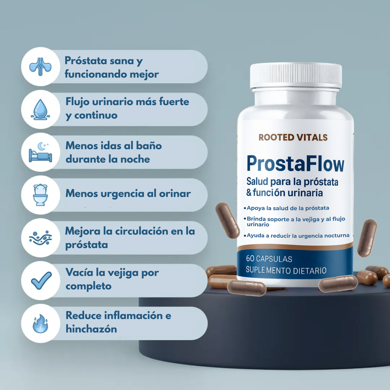 Prostaflow es un suplemento natural diseñado para acompañar el funcionamiento de la próstata de forma progresiva, sin depender de medicamentos fuertes.